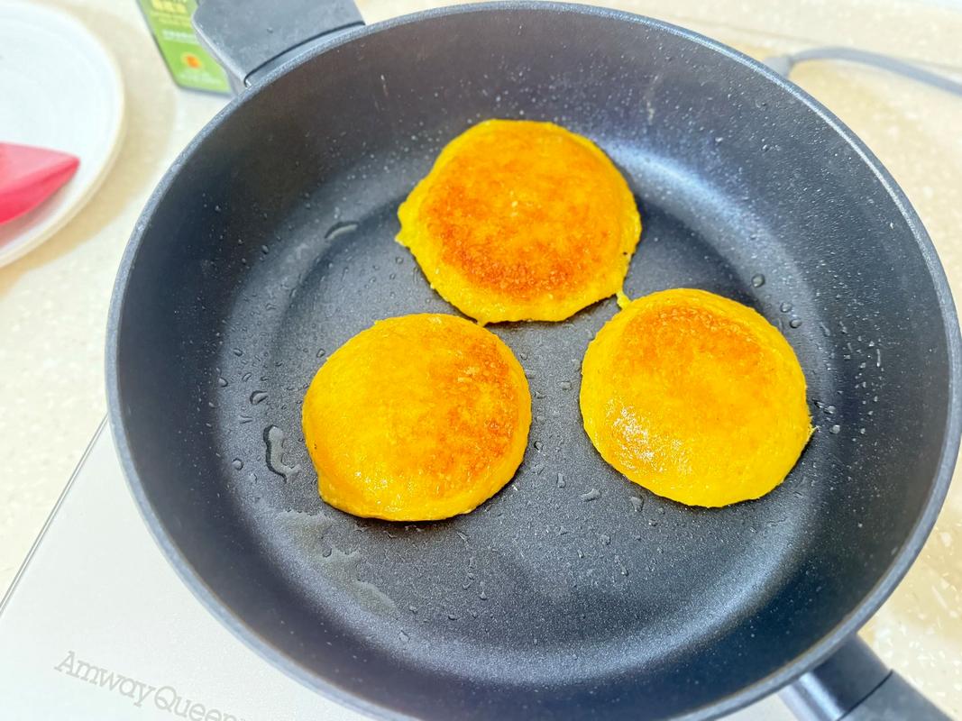 〖One〗、平底锅刷油全程小火两面煎熟即可。 奶香玉米饼 准备食材: 熟玉米粒、鸡蛋、玉米淀粉10g、面粉10g、配方奶20毫升。 做法: 玉米粒煮熟,加入淀粉、面粉、鸡蛋、配方奶搅拌均匀。每个牌子的面粉吸水量不同,液体的量可自行调整。搅拌成流动的面糊。平底锅刷油全程小火两面煎熟即可。