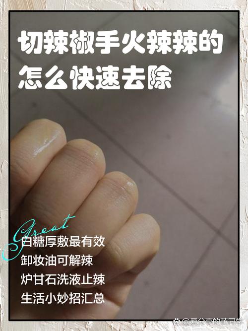 〖Five〗、被尖椒辣手后,可按以下步骤处理:第一步:立即用凉水冲洗发现手部被尖椒刺激后,需第一时间用流动的凉水反复冲洗接触部位,持续10『1』5分钟。凉水可快速降低皮肤表面温度,抑制辣椒素(主要致痛成分)的扩散。注意避免使用温水、热水、盐水、食醋或酒精,这些物质可能加重皮肤刺激或破坏屏障功能。