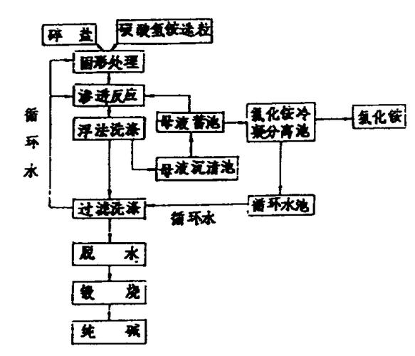 卤水碳化法:对于碱、硝、盐共生的泡碱型天然碱湖水或主要成分为泡碱(Na2CO3·10H2O)的固体矿,提取天然卤水进行碳化、干燥和煅烧,生产出纯碱。轻碱制重碱工艺 无论是合成碱法还是天然碱法,生产出来的纯碱均为轻碱。轻碱经再加工可制得重碱。