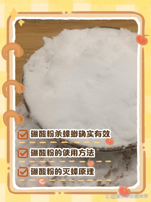 〖Two〗、硼酸粉是一种有效的蟑螂杀灭剂,以下是使用它有效灭蟑的方法。 制作硼酸饵剂:将硼酸粉与适量的面粉、白糖混合,白糖能吸引蟑螂,面粉起到黏合作用。加入少量水,揉成小面团或搓成小丸子状,放置在蟑螂经常出没的角落、缝隙处,如厨房橱柜、墙角、冰箱底部等。