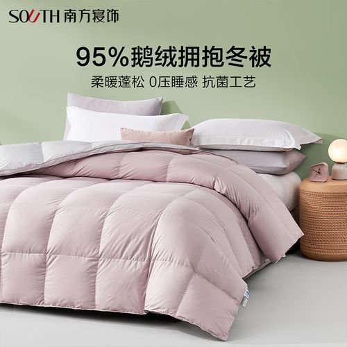 〖Four〗、在冬天,南方适合使用羽绒被。由于南方气候湿润且没有暖气,室内外温差小,因此对被子的保暖性能要求较高。羽绒被因其轻盈和卓越的保暖性能成为南方的理想选取。它能够很好地隔离寒冷空气,并保持被窝的温暖。 相比之下,北方冬天由于室内通常有暖气,室温较高,对被子的保暖性需求不如南方那么高。