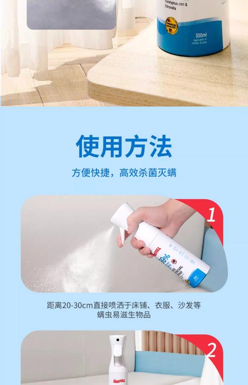 〖One〗、除螨喷雾的效果:除螨喷雾是专为消除螨虫而设计的产品,通过喷洒在床上、沙发、地毯等螨虫易滋生的地方,可以有效减少螨虫的数量。因此,除螨喷雾并不是智商税,而是一种实用的除螨工具。判断床上是否有螨虫的方法:螨虫检测试纸:这是一种简单而有效的检测方法。
