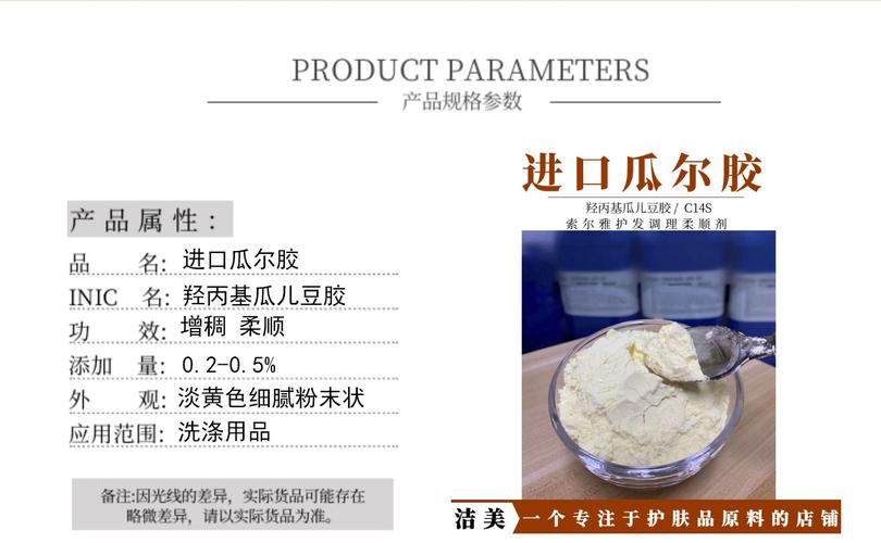 〖Two〗、瓜尔胶是由豆科植物瓜尔豆的半乳甘露聚糖提取物制作而成的。它是一种高分子天然亲水胶体,通常用作食品增稠剂,外观为白色到淡黄色的自由流动粉末,可溶解于冷水或热水中,遇水后形成胶状物质,达到快速增稠的效果。瓜尔胶主要分为食品级和工业级。在保水性方面,卡拉胶比瓜尔胶具有更好的保水性。