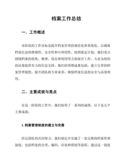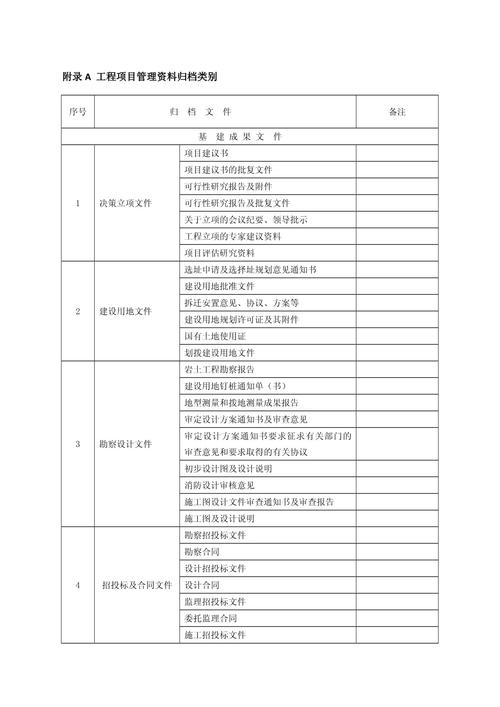 〖Three〗、工程资料归档总结规范主要包括以下几点: 明确归档范围和分类 所有与工程项目相关的文件、图纸、数据、照片等资料都应纳入归档范围。 资料应按照性质、用途和形成阶段进行分类,如设计资料、施工资料、监理资料、验收资料等。 归档资料的总结顺序 通常按照工程项目的时间顺序或工作流程进行排序。