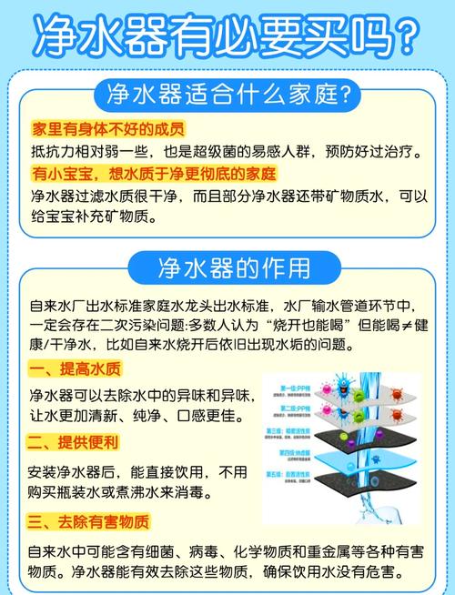 〖Two〗、如果家庭注重饮水的便利性和多样性,且不介意定期更换水桶的成本,那么饮水机可能是一个不错的选取。如果家庭更看重饮水的健康性和经济性,并愿意投入一定的时间和精力进行安装和维护,那么净水器可能更适合。最终选取应根据个人需求和家庭实际情况来决定。