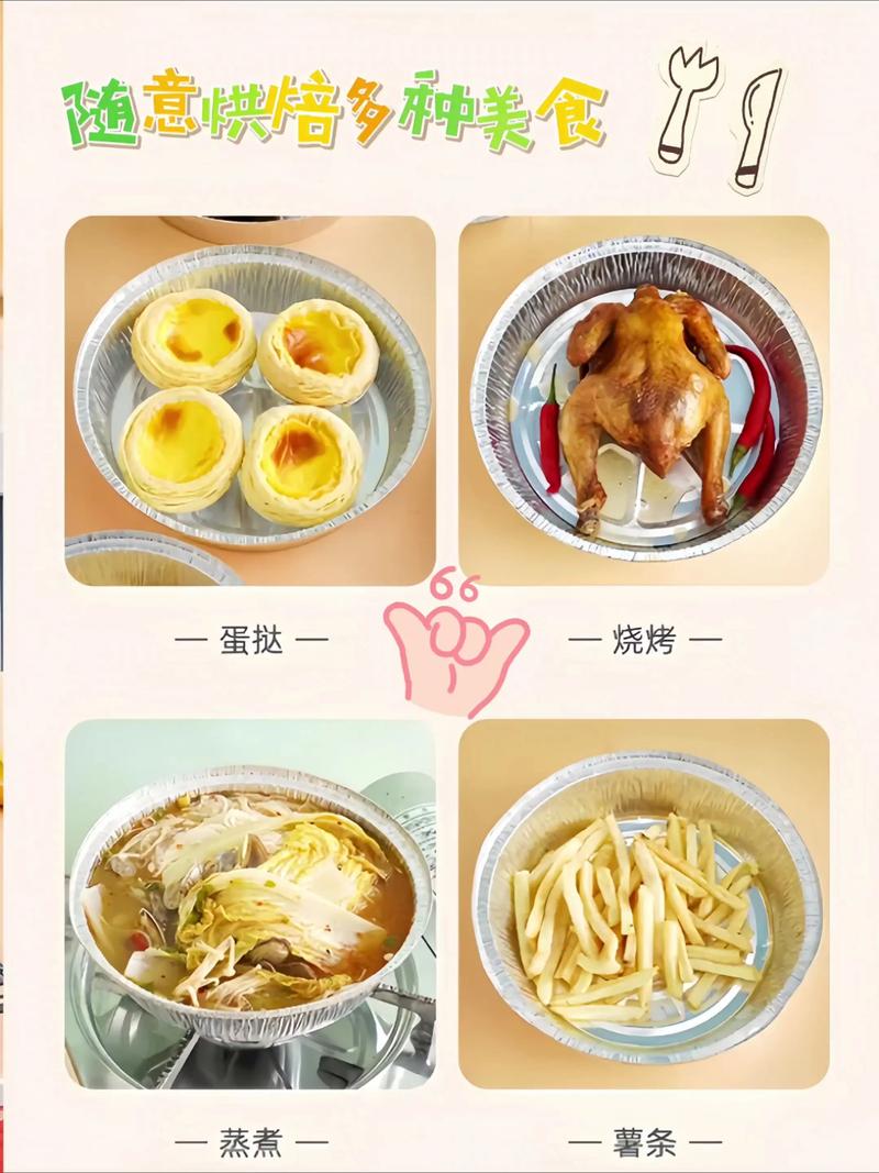 总结建议如果是高温烹饪、处理多汁食材,且可接受清洗或重复使用,选锡纸盘更合适;要是烹饪轻油食材、追求免洗便捷、进行低温短时间加热,纸盘是更好的选取。核心原则是平衡口感与清洁需求,优先选取食品级材质,避免覆盖过严影响空气循环。