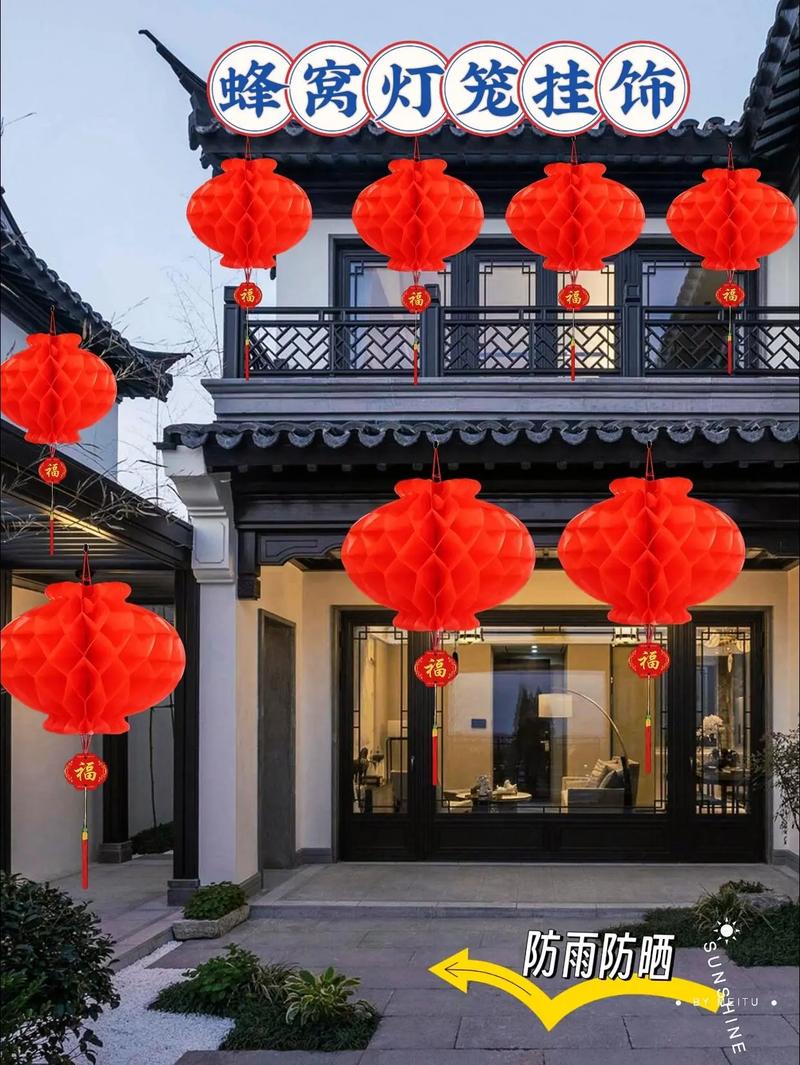 〖Six〗、门廊:在门廊上挂红灯笼,为家庭营造温馨氛围,给归家的人带来安心和归属感。 客厅:在客厅悬挂红灯笼,增添家庭聚会喜庆气氛,让人感受家的温暖和幸福。 窗户:将红灯笼挂在窗户上,不仅装点室内环境,还能让温暖灯光溢出到室外,展现家庭温馨和睦。