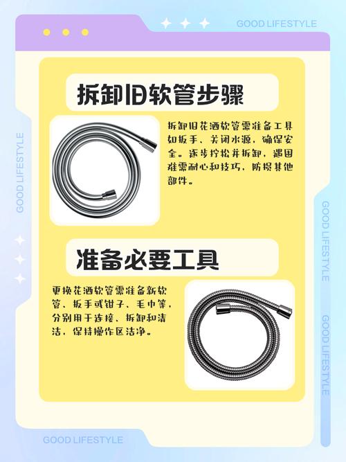 〖One〗、更换方法: 购买新软管:根据实际规格重新购买一个新的软管,如果条件允许,可以携带旧软管到店里面选取匹配的型号。 拆卸旧软管:在花洒上面盖上一张布,防止拧动时损坏其他部件或划伤手,然后用手拧开与花洒、出水口相连的管子。 安装新软管:将新软管的一端对着花洒,顺着螺旋式纹理向上拧紧,确保连接紧密。