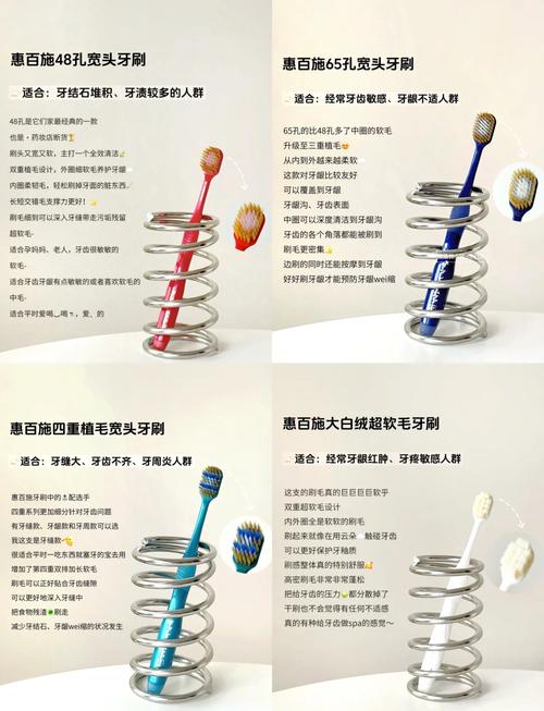 选取惠百施牙刷型号时,可以遵循以下步骤:观察包装上的数字:惠百施牙刷的型号主要通过包装上的数字来表示。其中,个位数代表刷毛的质地,而十位数代表刷毛的列数。