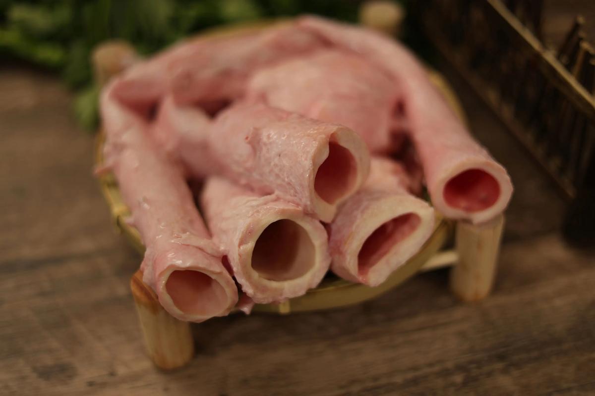 黄喉实际上是指猪、牛等动物的大血管,主要是主动脉,也被称作“心管”,并非气管或喉部结构。 黄喉之所以得名,是因为它淡黄色的外观和类似喉部的形状。猪黄喉大约70厘米长,而牛黄喉则可达到约10米长,一端粗一端细。 在火锅中,黄喉通常以两种形式出现:水发和鲜货。