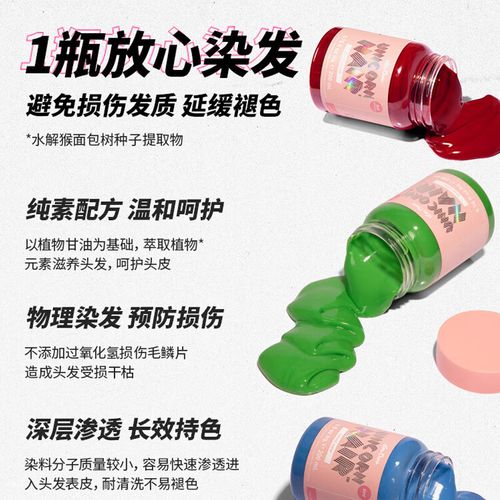 〖Four〗、纯植物成分:独角兽染发膏是由limecrime品牌推出的纯植物染发膏,不含有害化学成分,因此不会对头发造成伤害。半永久性染发膏:这款染发膏是半永久性的,颜色会随着每次洗头逐渐褪色,这也减少了长时间停留在头发上对头发造成的潜在伤害。