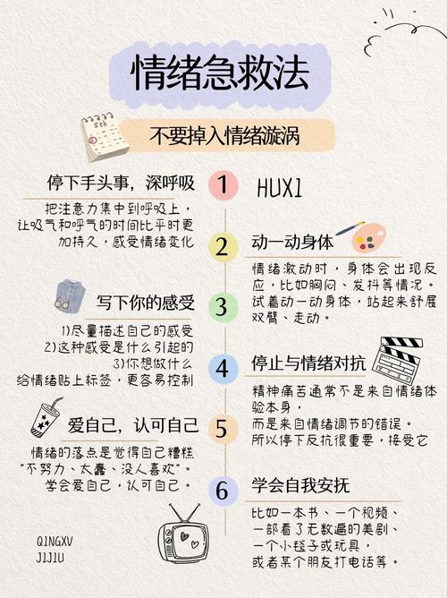 〖Two〗、有效的排解负面情绪需结合情绪觉察、表达、运动调节及注意力转移等方法,具体如下:情绪觉察:识别情绪是化解的前提排解负面情绪的第一步是觉察情绪。当感到焦虑、愤怒或抑郁时,需暂停冲动行为,通过深呼吸平静身心,观察身体反应(如心跳加速、胃部紧绷)和脑海中的念头(如对未来的担忧或过去的懊悔)。