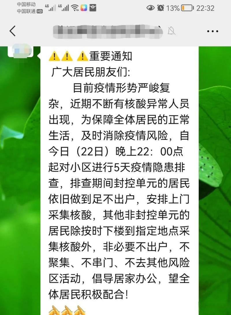 从严管控中风险区。现有的中风险区,在未解除之前,继续实行“足不出区、错峰取物”管控措施,进行全封闭管理,禁止人员进出,严格落实居家隔离措施。中风险区所在街道要做好封控区域内的生活、就医等服务工作。有序恢复生产生活秩序。