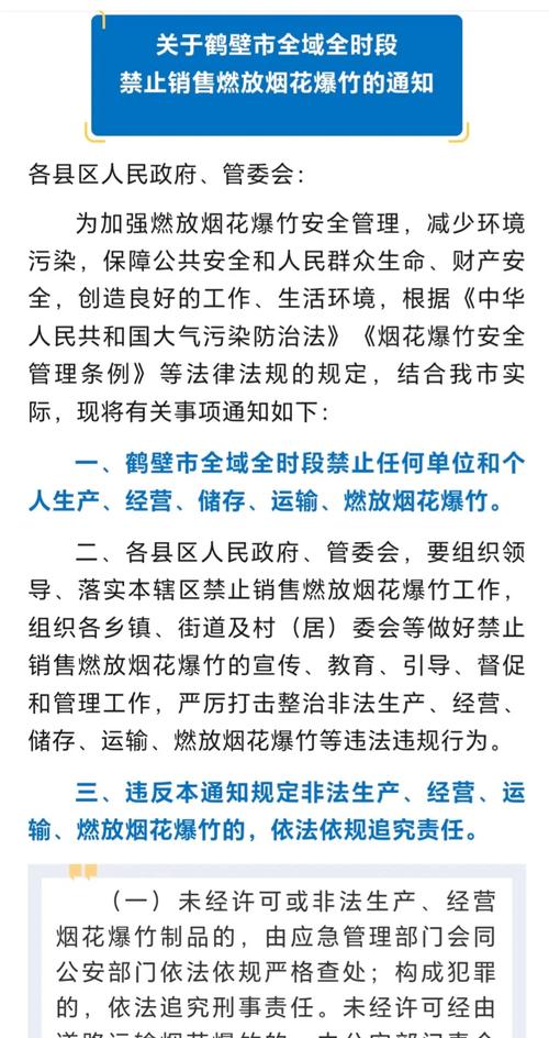 〖Six〗、销售点:禁放区外设16个临时销售点,允许燃放时间段内销售。政策调整背景与争议法律层面 2023年12月,全国人大常委会法工委明确“全面禁燃烟花爆竹不合法”,指出《大气污染防治法》及《烟花爆竹安全管理条例》未对符合质量标准的烟花爆竹作全面禁止性规定,地方政府应按上位法精神修改规定。