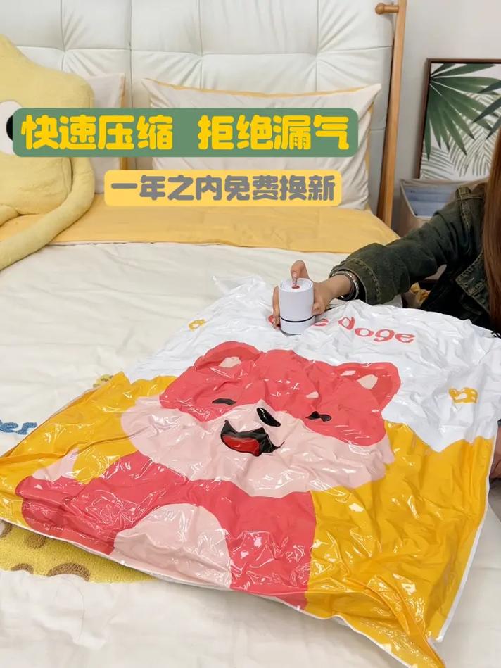 〖Four〗、真空收纳袋的好处是节省空间。对衣服好处不大,但是收纳被子还是很实用的。真空收纳袋又称真空压缩袋,是将袋内空气抽出,大气压力就将它压缩成这个样子。棉被的棉花纤维是卷曲的互相支撑着,使纤维之间有大量空隙,棉被就靠空隙中的空气保暖。棉纤维虽然有一定弹性,但长期压缩变形。