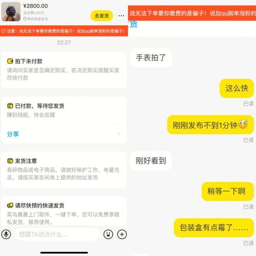 在闲鱼上以低价购买手表时,需要特别谨慎。因为这种低价往往伴随着较高的风险,尤其是对那些想占便宜的买家来说。骗子常常瞄准这类人群,低价手表中问题多多,且可能涉及到仿冒品。卖家声称提供验货宝服务,看似增加了可信度,实则可能有其背后的动机。
