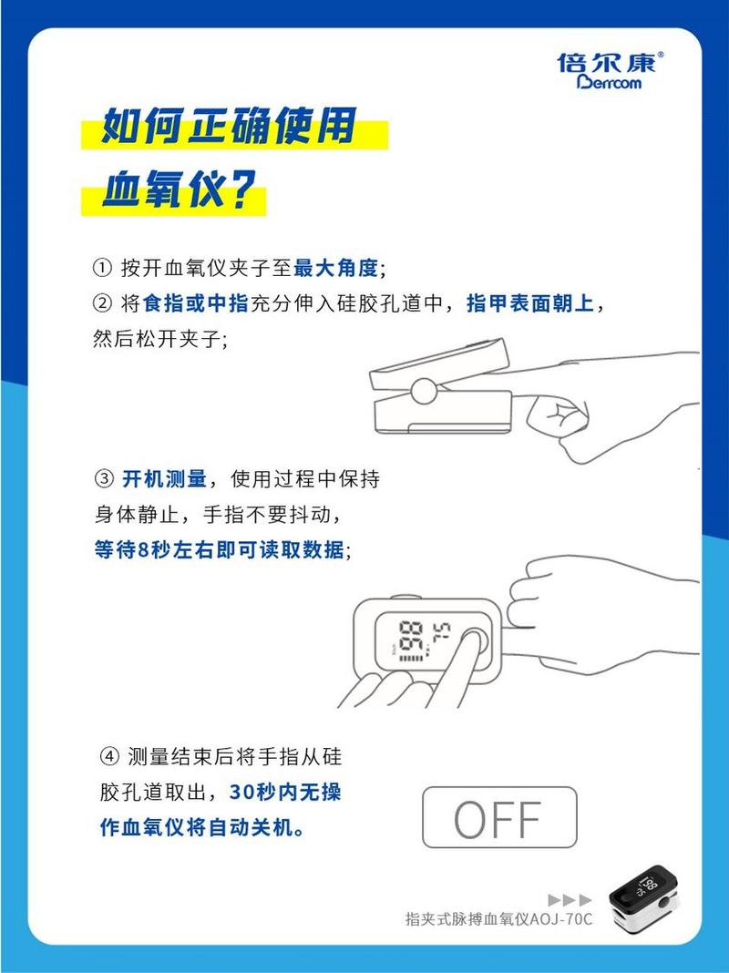 〖One〗、首先,让老人在安静状态下平躺,双手自然放置两侧,确保测血压的手臂与监测血氧饱和度的手臂不一致,以防止干扰。长时间连续监测应每两小时更换一次手指位置。将血氧仪的指套调整到位,确保红光对准甲床,手指与心脏保持水平。待数据稳定后,准确记录测量结果。血氧值,即血氧饱和度,反映了血液中氧气的浓度。