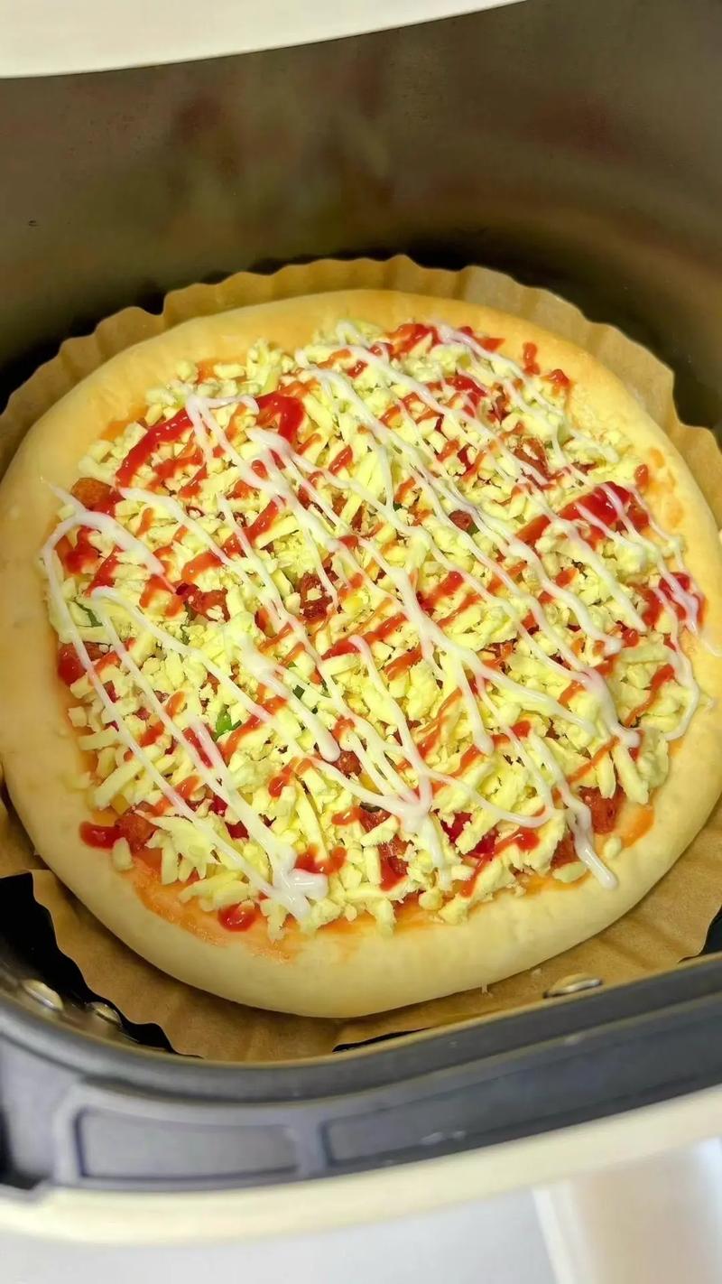 披萨放在烤箱的中上层,一次只能烤一个,这样烤出来的披萨才能受热均匀。准备材料:披萨饼皮、披萨酱、芝士碎、青豆、玉米粒、虾仁、香肠适量 制作方法:模具底层刷少许油防粘连,铺上饼皮。在饼皮上均匀的刷满披萨酱。撒上一层芝士碎。