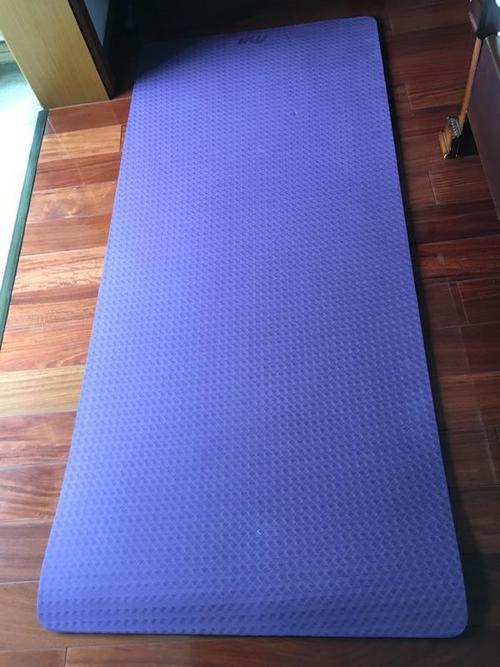 〖Two〗、买回来的瑜伽垫两面是不一样的,一面是完全光滑平整的,另一面是有起伏不平整的,还有条纹,使用瑜伽垫的时候光滑平整的一面是贴地面朝下的,另一面有起伏有条纹的朝上,就是脚踩的一面。不光滑的一面朝上其实是有很多原因的,比如有防滑的作用,也有帮助训练的作用。