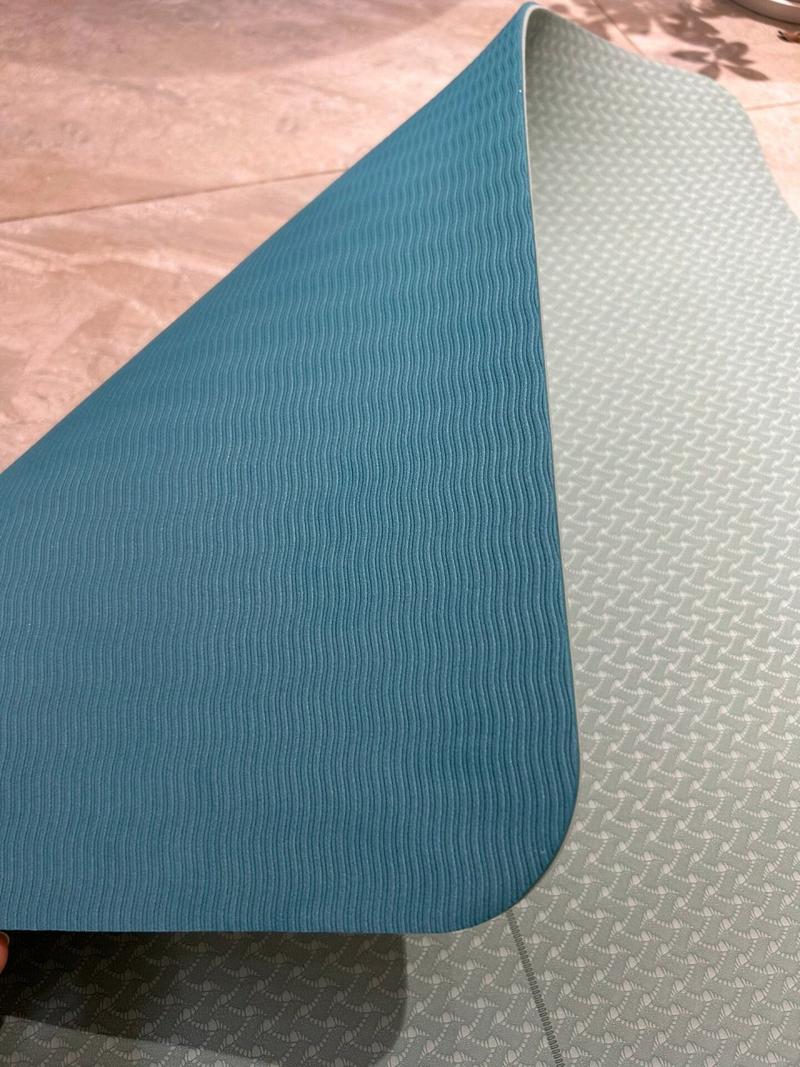 瑜伽垫有波浪的朝上。瑜伽垫波浪纹是正面。波纹在下面增加摩擦力来防滑。另外一种是正位瑜伽垫,表面的线条就不叫波纹了,叫正位线条,比如atmananda,跟传统垫恰恰相反。瑜伽垫的尺寸主要是61cmx173cm 和61cmx183cm。国内主要还是以61cmx173cm的为主。也有其它规格的,出口日本的TPE垫子就是65x175cm。