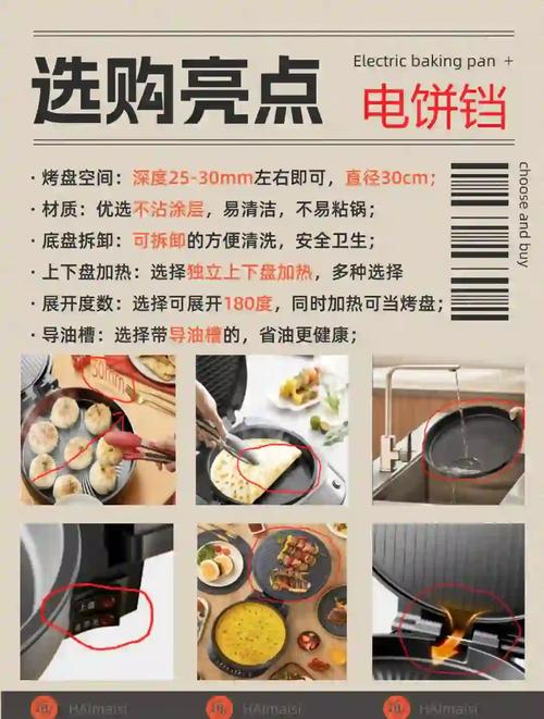 〖Four〗、在众多电饼铛品牌中选取,建议购买大品牌,质量有保障,使用更安全。功能上,简单的上下火开关就足够实用,避免购买过于复杂的功能。底盘深度和是否可拆卸也是考虑的因素,深底盘适合煎包、煎饺,可拆卸的设计便于清洗。综上所述,电饼铛和平底锅各有千秋。