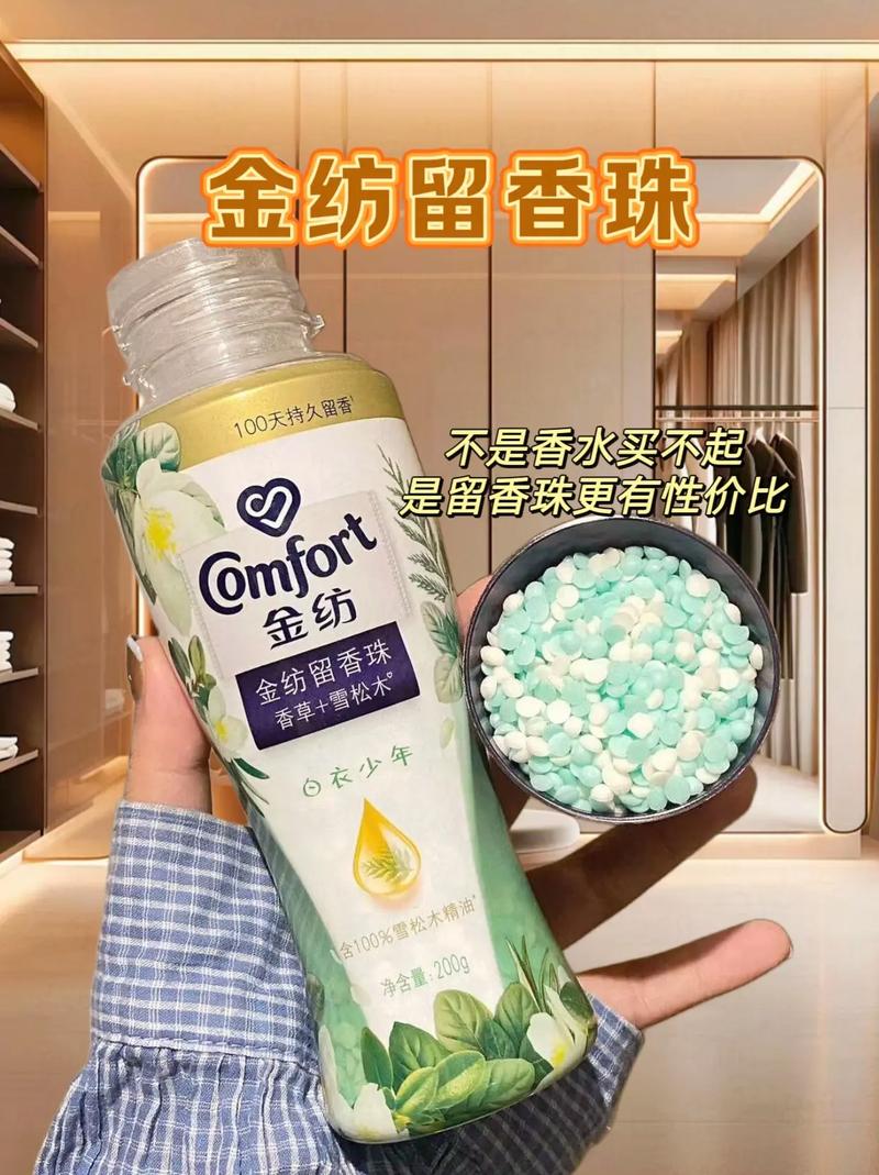 〖One〗、当妮(Downy):当妮作为宝洁旗下的高端衣物护理品牌,其留香珠产品以独特的香型和持久的留香效果受到广泛好评。其采用的微胶囊技术,使得香味能够在衣物上持久释放。金纺(Comfort):金纺作为英国品牌,拥有较高的市场认知度。其留香珠产品以精致的香型和护理效果著称,能够为衣物带来持久的清香。