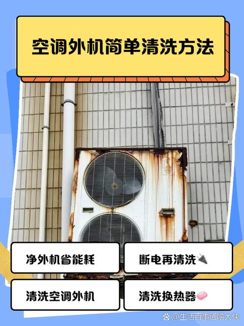 〖One〗、清洗空调外机的方法主要有以下三种:用水冲洗:切断电源:清洗前务必切断空调电源,防止触电。冲洗方式:可以直接用自来水上下冲洗,重点冲洗翅形铝箔散热片以及右侧面。注意事项:避免水直接流入风扇轴承,以免导致润滑不良。用毛刷清洗:适用情况:当用水冲洗不方便时,可以选取长毛刷。