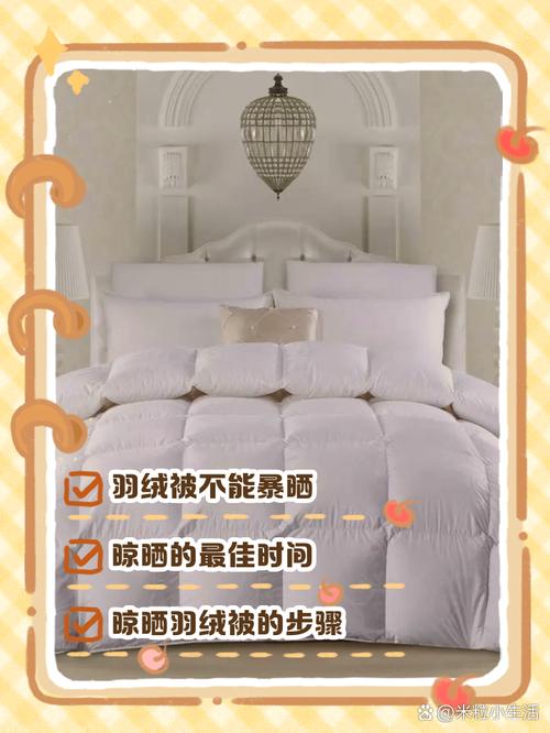 〖Four〗、鹅绒被可以在太阳底下晒,但需避免暴晒。强烈阳光对鹅绒被有不利影响,尤其是羽绒纤维,动物蛋白质地在高温下容易受损。太阳光具备杀菌作用,不仅能使被子更蓬松,还能有效消毒。定期晾晒鹅绒被有助于保持内部空气新鲜,确保被子持续保持舒适状态。