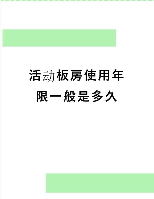 〖Two〗、活动板房的最长使用年限一般为5年至10年。以下是详细的解释:首先,要明确的是活动板房的使用寿命受到多种因素的影响。其中包括使用环境、材料质量、维护状况等。在理想的使用环境和条件下,经过合理的维护,活动板房的使用寿命可能达到或超过其理论最长年限。