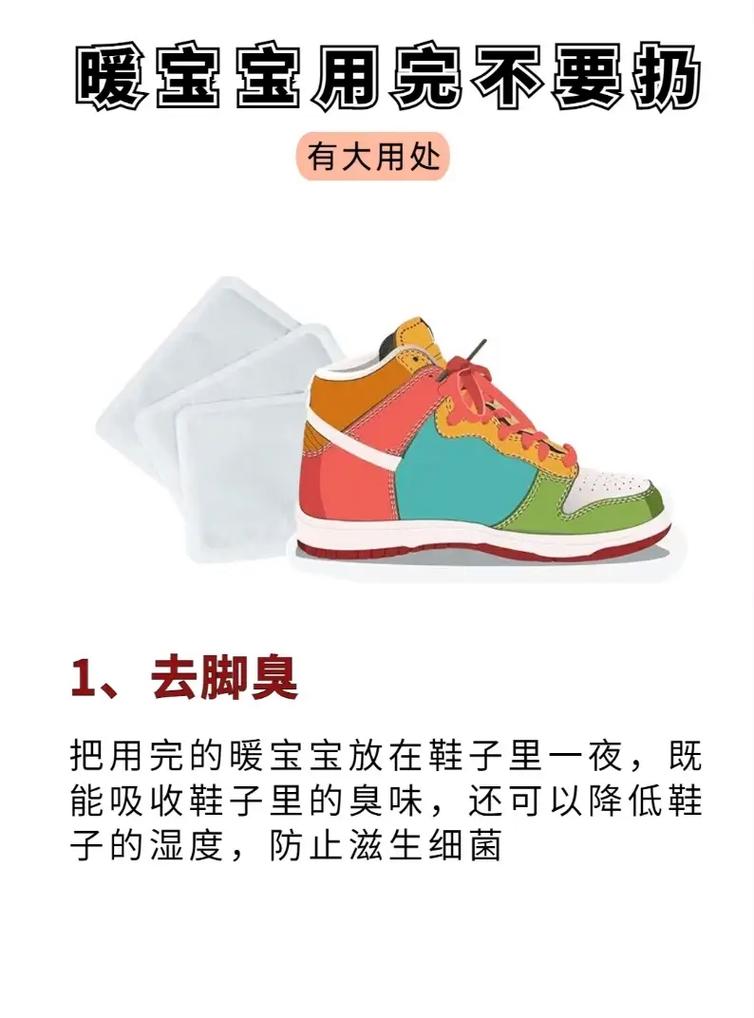 〖Three〗、使用完毕的暖宝宝可以采取以下处理方式:将其撕开,将内部的填充物作为肥料倒入花盆,为植物提供营养; 将用过的暖宝宝放置在衣柜中,利用其内的活性炭成分,保持衣柜的干燥,避免衣物受潮发霉; 将用过的暖宝宝放入鞋内,有助于吸收鞋内异味,并防止鞋子潮湿。