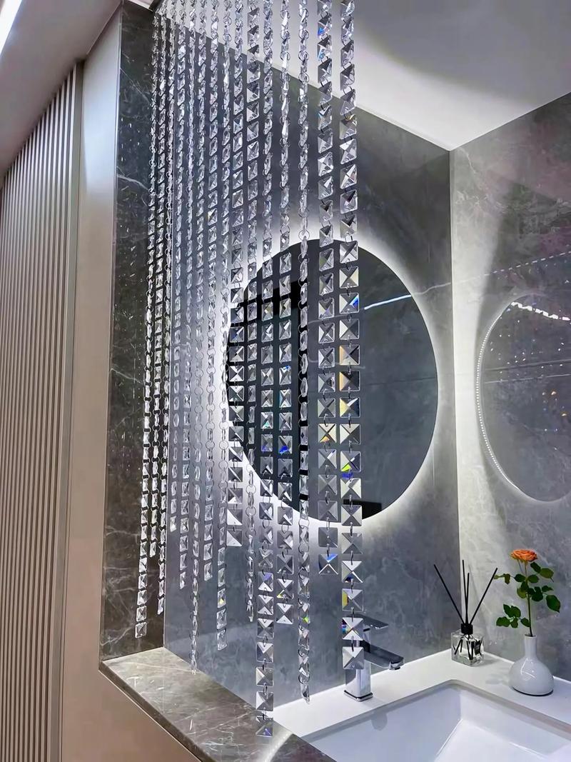 珠帘隔断在风水上有以下讲究:挡煞化煞:珠帘隔断有着挡煞化煞的效用。在面对煞气之处悬挂珠帘,可以作为缓冲,使煞气不能直接穿堂入室,从而保护室内气场不受干扰。美化空间与提升运势:在洗手间或客厅悬挂珠帘隔断,不仅可以美化空间,还能为家庭带来好运。