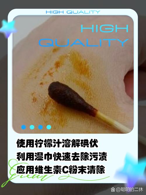 使用草酸溶液:将5%的草酸稀释后,轻轻搓洗床单上的碘伏污渍。随后用肥皂水彻底清洗几次。注意,草酸可能会留下气味,需注意通风。维生素C:若碘伏污渍刚沾染不久,可立即取一片维生素C药片,用清水溶解后覆盖在污渍上。不久后,碘伏污渍应该会消失。这是利用酸碱中和反应来清除污迹。