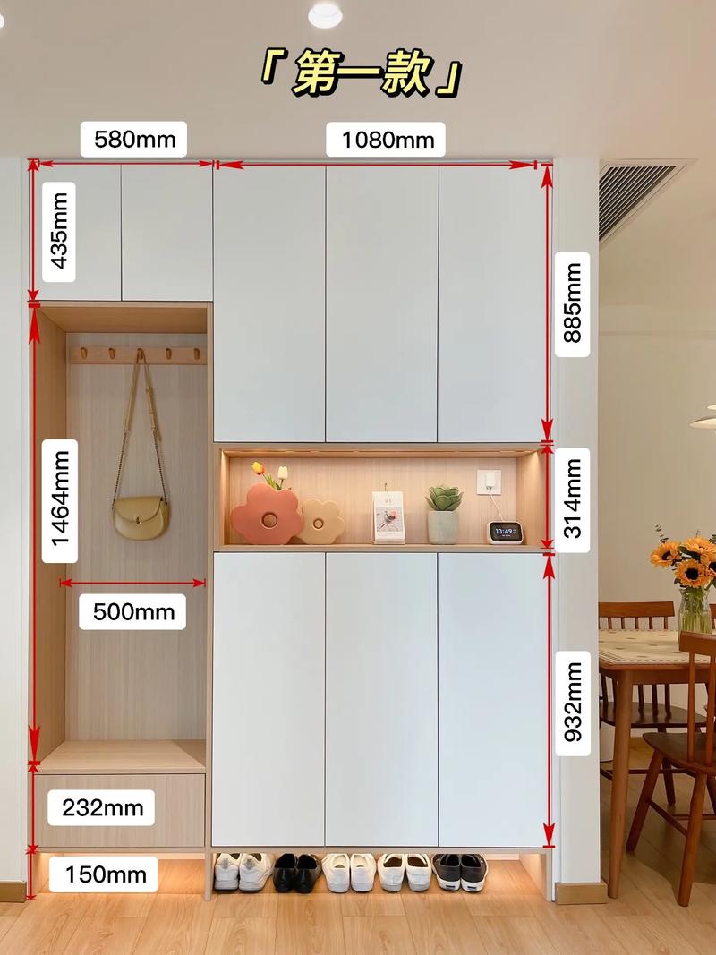 入门鞋柜的高度通常不建议超过800mm,宽度则根据利用的空间宽度合理划分。深度方面,一般是家里最大码鞋子的长度,介于300~400mm之间。款式设计会影响高度,需结合玄关空间格局来调整。常见的入户鞋柜高度在600『8』00mm之间浮动,一些高档款式可能会达到1000mm左右。