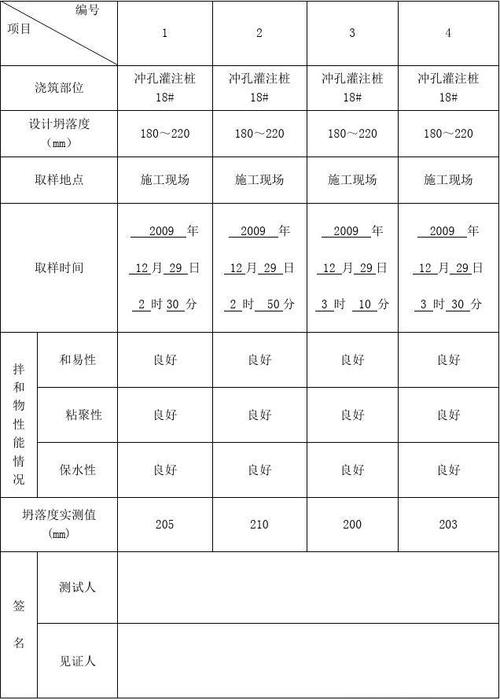 混凝土坍落度的标准范围因混凝土强度等级和施工条件的不同而有所变化。一般来说,当混凝土强度等级小于C50时,坍落度应小于180毫米;强度等级大于C50时,坍落度应大于180毫米。