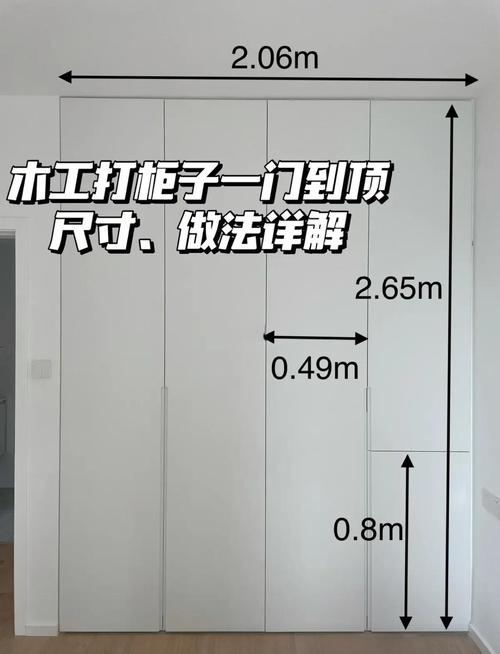 下面探讨木工打柜子的另一个问题:木工打柜子可以做一门到顶吗?答案是可以的。但需要注意一些细节,比如柜门要比柜体短一些,留出空隙方便开门;靠墙那边要多加一块柜体板,保证柜门可以顺利打开;踢脚线也要留出柜门的位置等。
