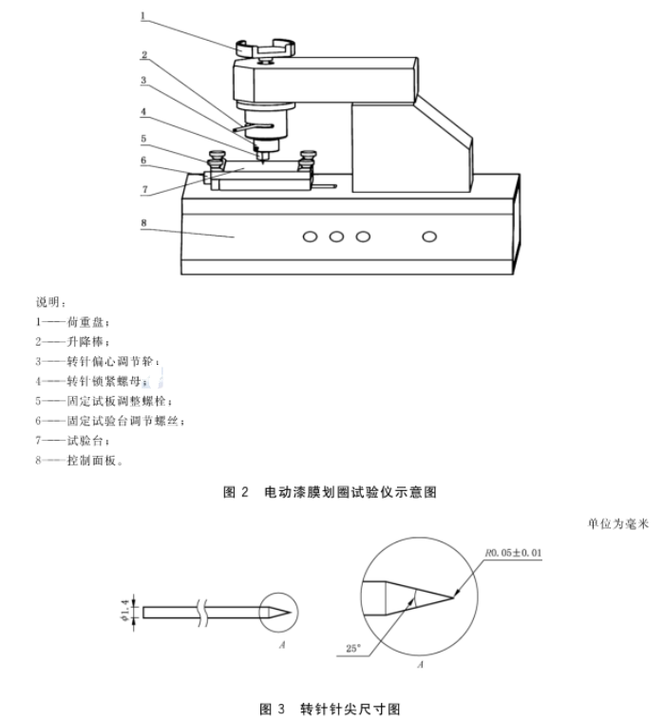 〖Three〗、油漆附着力的测试方法主要有以下几种: 划圈法 原理:使用附着力测定仪在油漆涂层上划出圆滚线划痕,根据划痕范围内的漆膜完整程度进行评定。 步骤:将制备好的样板固定在测定仪上,添加适当砝码,以80100r/min的速度摇动摇柄,形成标准圆长5cm的划痕,然后取出样板进行评级。