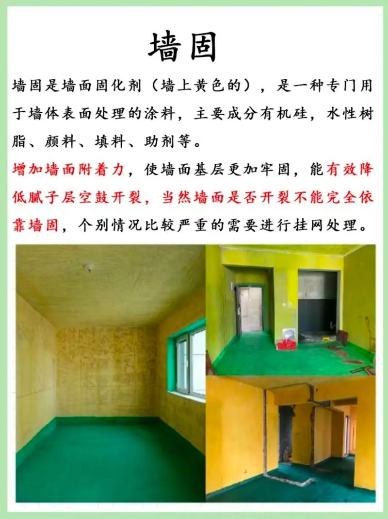 刷墙固在装修中扮演着重要角色。首先,它可以改善墙面的质感,对于过于光滑的墙面,刷墙固能起到拉毛的效果,增加腻子与墙面的接触面积,从而提升腻子的附着力。其次,对于表面有灰尘的墙面,刷墙固可以起到粘拉作用,有助于清除灰尘,进一步提高腻子的粘贴效果。