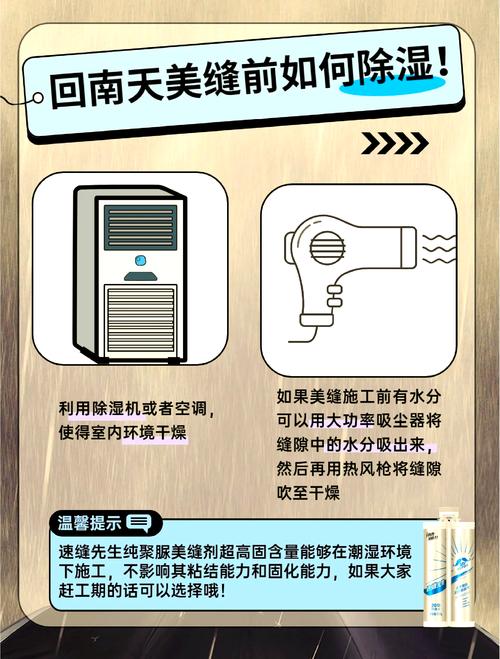 〖Two〗、为了保持室内环境的干燥,首要步骤是开启暖气和除湿器。在使用这些设备时,需先将卫生间等潮湿区域封闭,以确保暖气能有效去除湿气,达到理想的干燥效果。在进行美缝工作前,务必彻底清理瓷砖缝隙。尽管暖气和除湿器能逐渐降低室内湿度,但其效果相对缓慢。为加速干燥过程,可使用吹风机直接吹向缝隙,加速干燥。