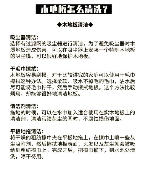 〖One〗、地板沾灰别担心,试试这些方法,让你的地板焕然一新!食盐大法:准备一桶水,撒点食盐进去,用墩布蘸水拖地。盐不仅能增大摩擦力,还能给地板抛光哦!酒精闪亮:同样一桶水,这次加点酒精。酒精擦过的地板,光泽度满分!小苏打+白醋组合:小苏打和白醋混合,直接撒地上,再用墩布拖。