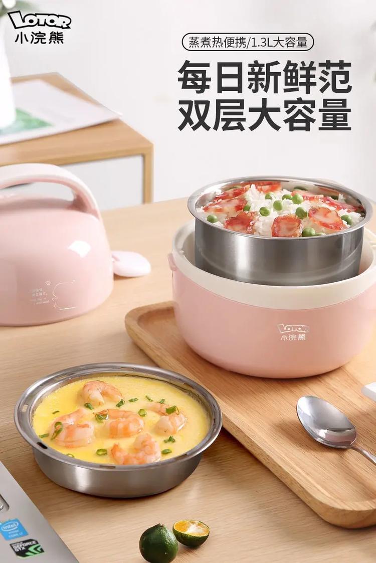 公司很多人都是用小熊的,我也就跟着买了。颜值很高,一个电器产品拎着像个包包一样;然后这款电热饭盒不同于一般的饭盒,不仅能够加热,还能现做饭菜,一般早上出门前,电热饭盒的下层放米和适量水,上层码好半成菜,中午下班前三十分钟按下按钮,到点就有新鲜的饭菜吃了,省钱又健康,哈哈。