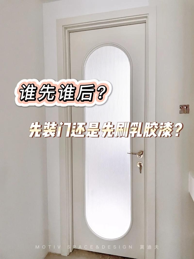 〖One〗、原则上应该是先安装门然后罚涂刷乳胶漆。原因是先涂刷乳胶漆的话在安装门的同时会敲击锁具以及合页的螺丝,在震动中难免会使得 门边的墙体松动开裂,后涂刷乳胶漆可以有效的修补这缺陷。标准的顺序是:门安装到位涂刷底漆2遍填补腻子,等墙体腻子批挂完毕后涂刷乳胶漆。再打磨涂刷门的面漆,工程完毕。