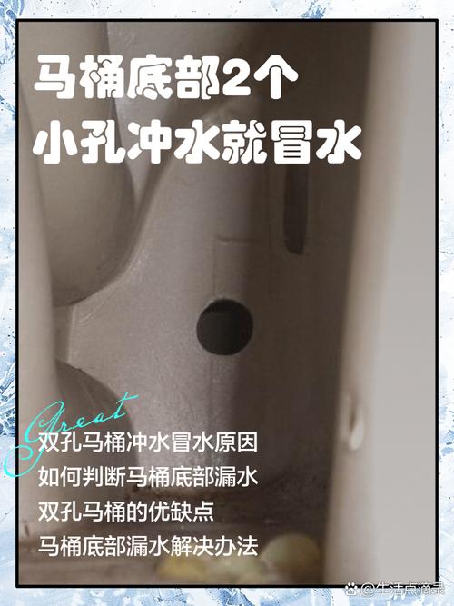 如果马桶底部的2个小孔冲水时冒水,可能是以下原因: 马桶底部的2个小孔被异物或污垢堵塞:可以使用专业的马桶疏通器或者清洁剂进行清理。 马桶底部的2个小孔处于不正确的位置:可以调整这两个小孔的位置,使其对准排水管道。