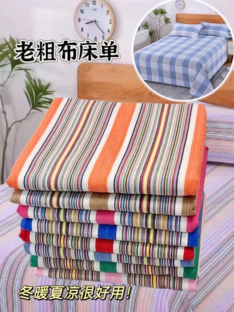 〖One〗、老粗布床单和普通床单在材料、质地和使用体验上存在显著差异。老粗布通常采用21支纯棉纱线,而普通床单纱线号通常更高,因此质地更细。老粗布床单由2股纯棉纱线手工织成,而加厚的凉席或四季毯则由5股纱线织成。老粗布床单是梭织布,而普通床单则是针织布。