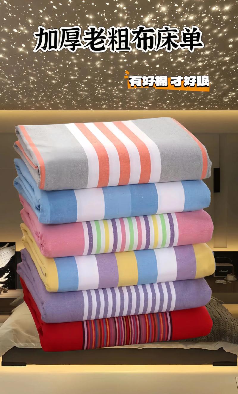 〖Two〗、缺点: 初次使用可能感觉粗糙:由于老粗布床单采用粗纱线织造,初次使用时可能会感觉手感较粗糙,需要经过一段时间的磨合和清洗才能变得更加柔软。 清洗保养需注意:老粗布床单的清洗保养相对其他床品需要更加注意,如水温、浸泡时间、洗涤用品的选取等,否则可能导致褪色或缩水等问题。