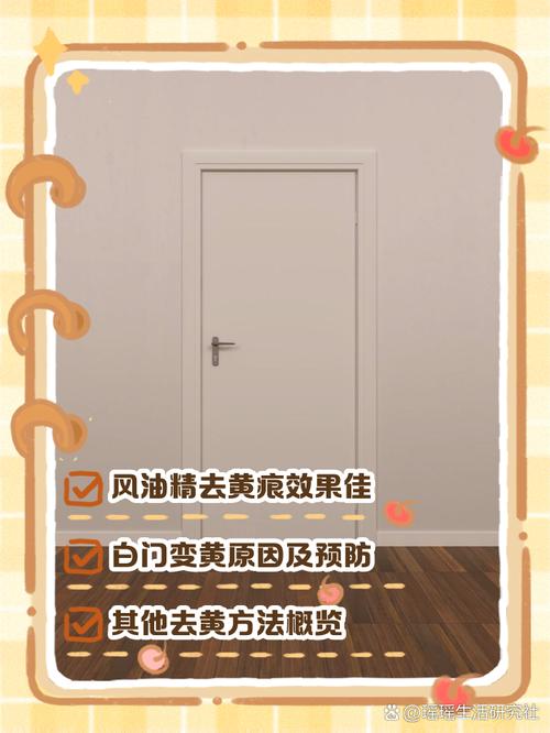 〖One〗、白色木门为什么会泛黄厂家本身采用的油漆质量不好便宜的木门所使用的材质以及相关的油漆一般都不怎么好,使用一段时间后,木门就会出现各种泛黄、开裂甚至脱落的现象。使用的时候没有保养好日常使用时很少对木门进行清洁,或者常使用湿布擦拭后不及时擦干等,都会是白色木门泛黄的主要原因。