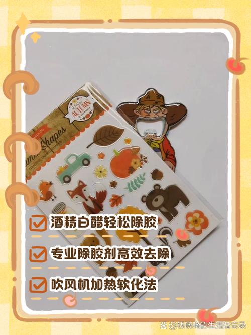 〖Six〗、去除贴画胶有不少巧妙小方法。可以使用吹风机,将吹风机距离贴画胶部位约10 - 15厘米,用热风档均匀吹拂,使胶受热软化,之后就可轻松揭下贴画,残留的胶用纸巾擦拭即可。酒精也是不错的选取,把酒精倒在抹布或棉球上,覆盖在贴画胶处,稍等几分钟,让酒精充分渗透,然后轻轻擦拭,胶就能被擦掉。