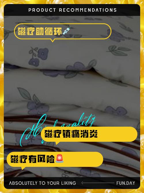 〖Two〗、磁疗床垫、被子、枕头等产品的效果并不明确且存在潜在风险。效果不明确:磁疗床垫、被子、枕头等产品通常被宣传为能够辅助治疗某些疾病。然而,从科学角度来看,这些产品的实际效果尚未得到广泛认可和充分证实。它们可能具有一定的辅助作用,但作用并不显著,且不能替代正规医疗手段。
