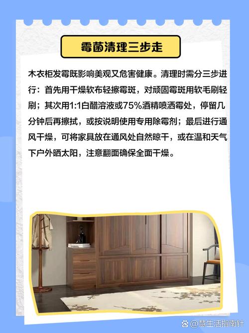 〖Five〗、首先,使用湿布彻底清洁发霉的木板内部,通常不需要洗涤剂就能擦净。清洁后,确保通风晾干。 注意,不要将刚穿过或长时间不穿的衣服长时间存放在衣柜中,尤其是冬季衣物,在放入前应妥善处理防霉。 鉴于南方湿度较大,应定期将衣物取出透气、见光,以防止霉变。