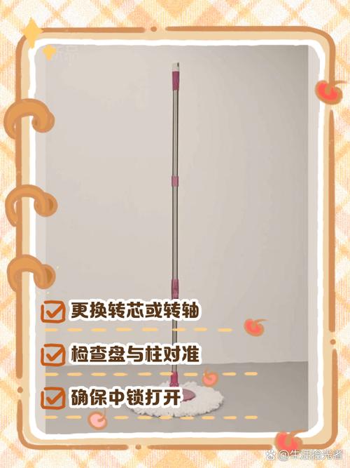 〖Three〗、要是拖把杆伸缩不顺畅,可能是伸缩杆内部有异物堵塞。可将伸缩杆抽出,用细铁丝或长棍清理内部杂物,再涂抹少量润滑油,以保证伸缩顺滑。若伸缩杆的卡扣损坏,导致无法固定在合适长度,需更换新的卡扣,安装时要确保位置准确、安装牢固。