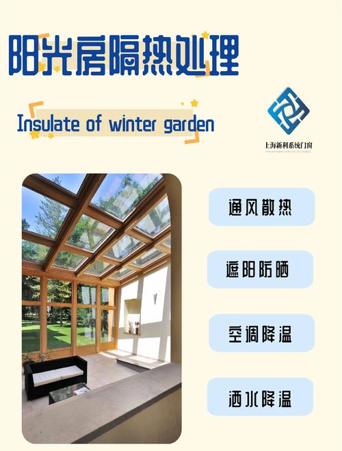 使用隔热膜:在玻璃上贴上隔热膜,能有效反射和吸收红外线,降低室内温度。 吊顶隔热:在阳光房内吊顶,可以选取品牌隔热膜,其隔热效果相当于24厘米厚的墙壁。问题四:阳光房顶隔热用什么材料效果最佳?阳光房顶隔热材料的选取取决于需求和预算。